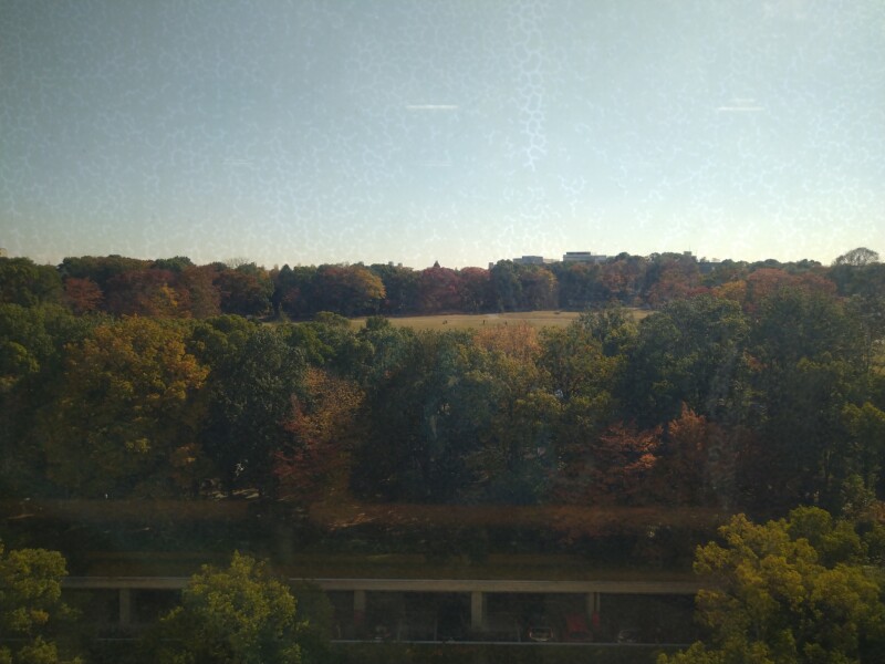 多摩中央公園の紅葉を眺めながらゆる体操に