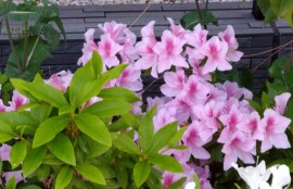 カフェへ、全面ガラス張りの窓から、満開の